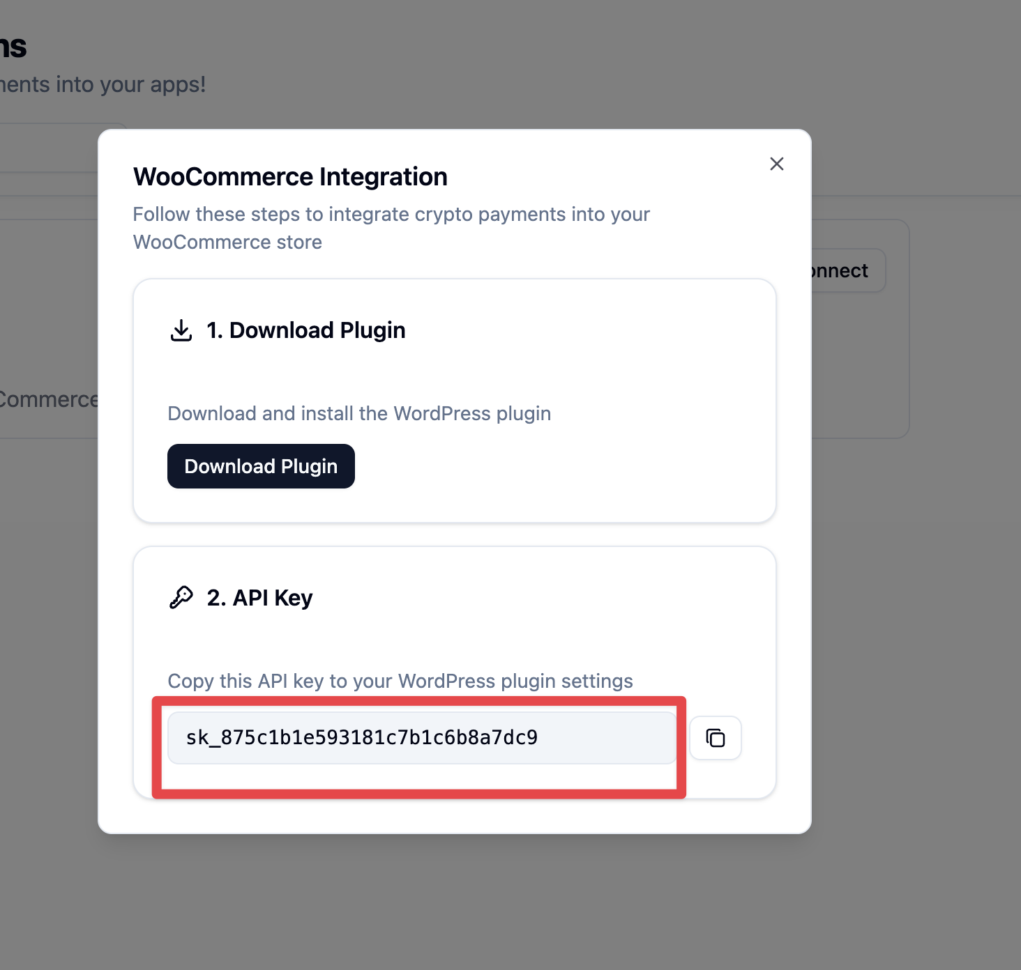 - In your WordPress store, open the Zeno Crypto Payment Gateway settings and paste the API key.